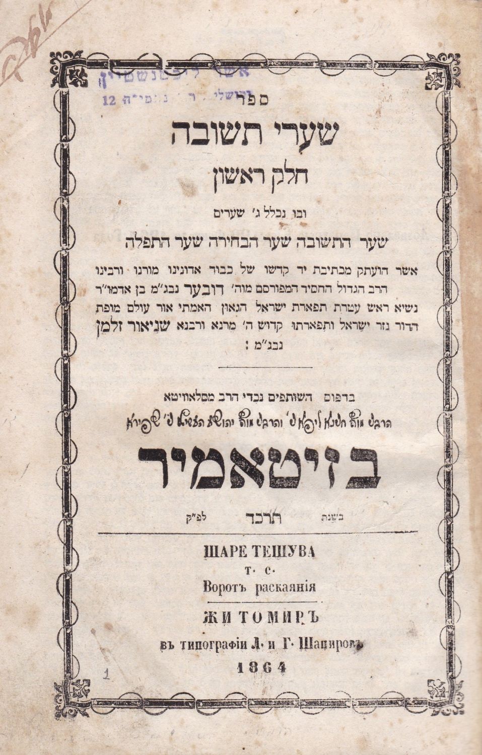 קובץ:שער שערי תשובה חלק א - הוצאת זיטאמיר, תרכד.jpg